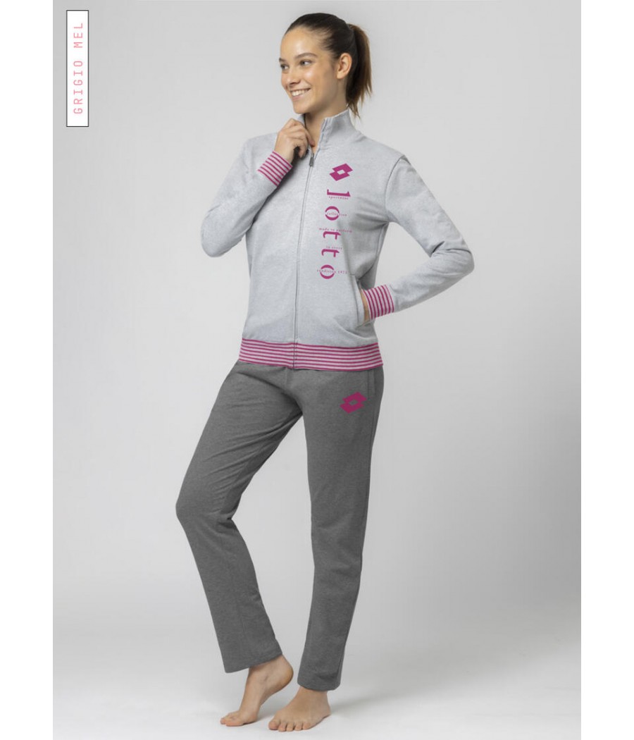 Tuta donna Lotto LA5016 in cotone garzato, modello full zip: morbida, pratica e ideale per il tempo libero in primavera/estate. Disponibile dalla S alla XL in due colori.