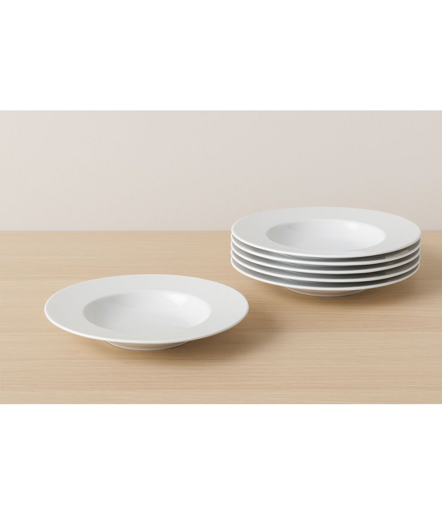 La forma ampia e il bordo leggermente rialzato donano un aspetto moderno e al tempo stesso classico, perfetto per servire primi piatti, zuppe o portate raffinate.