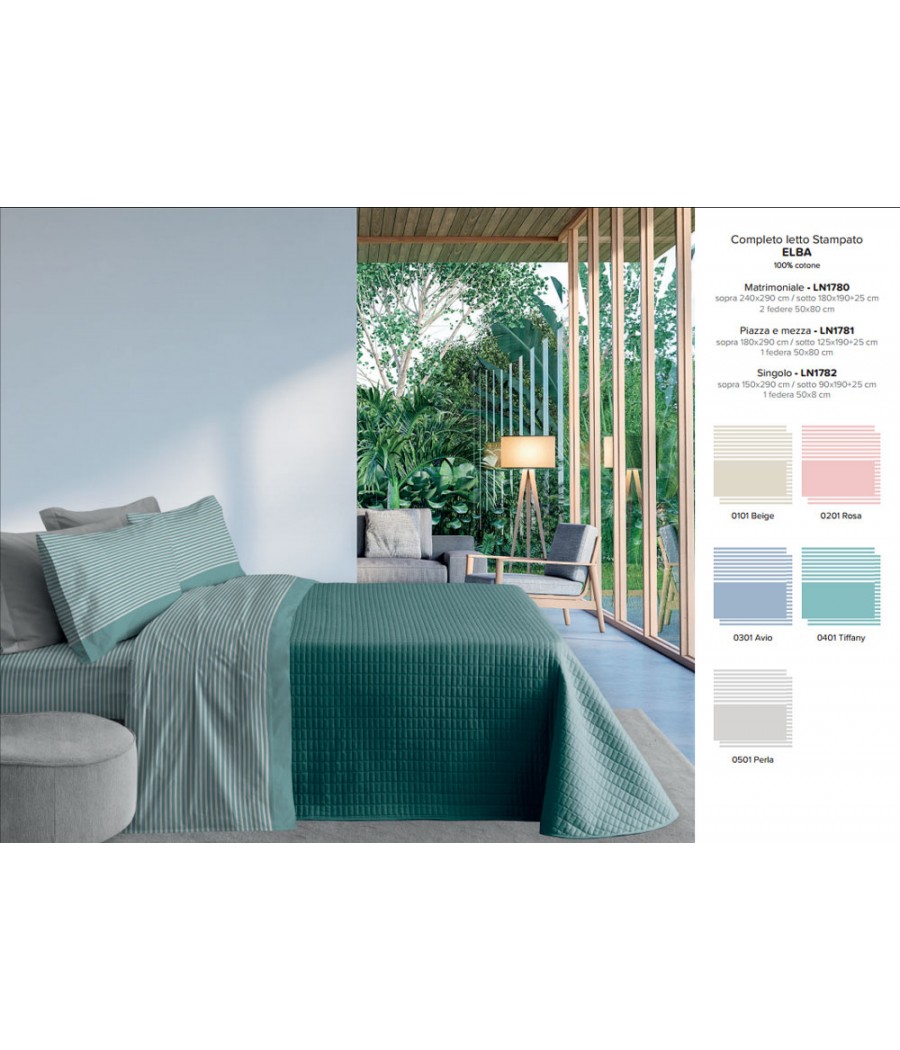 Completo lenzuola singolo Linea Oro Elba in 100% cotone Made in Italy, fresco e piacevole sulla pelle, ideale per l’uso quotidiano. Set completo con lenzuolo sotto con angoli, lenzuolo sopra e 1 federa. Disponibile in diversi colori.