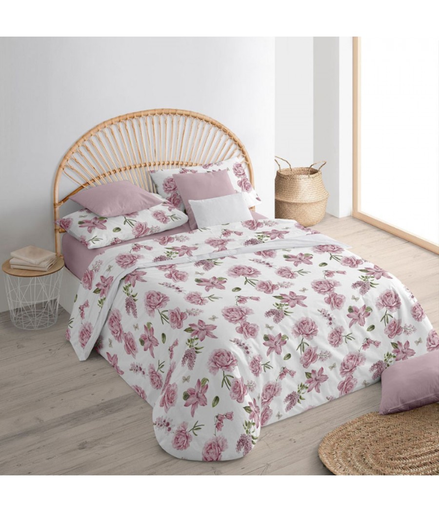 La fantasia floreale dona un tocco delicato e ricercato alla zona notte, valorizzando il letto con uno stile armonioso e raffinato. I colori disponibili — carta da zucchero, tortora, rosa antico e verde — permettono di abbinare facilmente il completo a diversi stili d’arredo, dal classico al moderno.