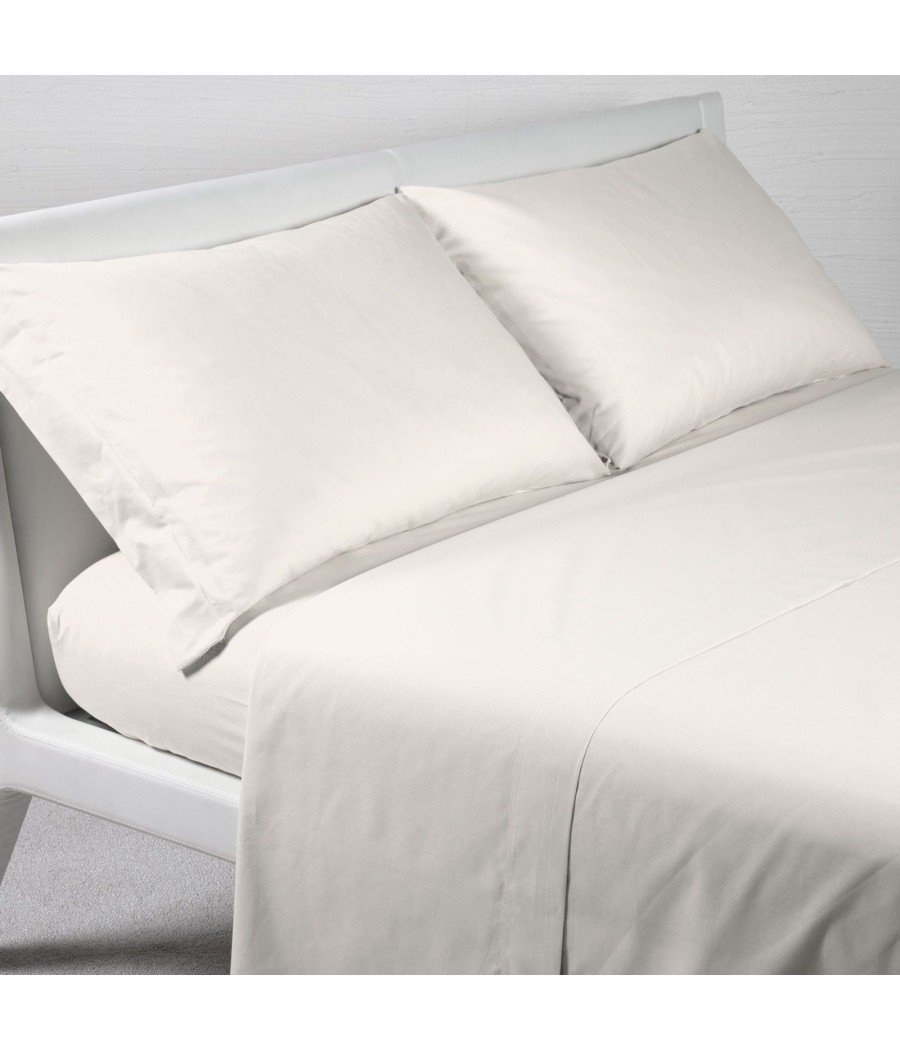 La trama del tessuto a 57 fili per cm² conferisce al completo una finitura morbida e resistente. Il lenzuolo si distingue per la sua elevata densità, che assicura una lunga durata senza perdere in morbidezza o brillantezza anche dopo numerosi lavaggi.