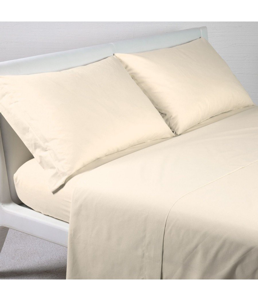 La trama del tessuto a 57 fili per cm² conferisce al completo una finitura morbida e resistente. Il lenzuolo si distingue per la sua elevata densità, che assicura una lunga durata senza perdere in morbidezza o brillantezza anche dopo numerosi lavaggi.
