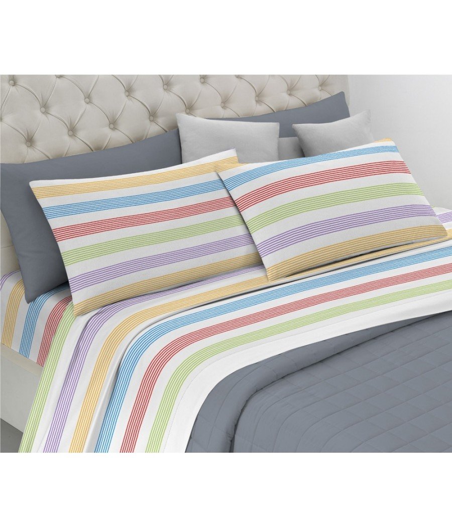 Con la sua fantastica fantasia a righe, questo completo lenzuola è un elemento decorativo versatile che si abbina facilmente a qualsiasi tipo di arredamento. I 4 colori disponibili offrono opzioni per ogni gusto e preferenza, permettendo di creare un ambiente armonioso e accogliente.