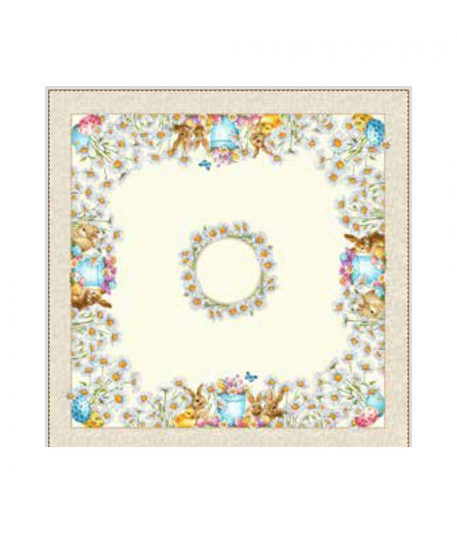Centrotavola 93x93 cm in pregiato tessuto Gobelin a tema Pasqua, perfetto per valorizzare la tavola con un tocco elegante e primaverile. Disponibile in 3 fantasie assortite tra cui scegliere.