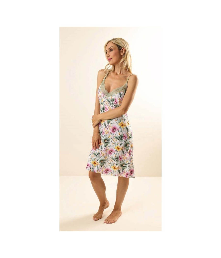 Eleganza e comfort per le tue notti: camicia da notte Gary in puro cotone, con stampa floreale, pizzo sul décolleté e vestibilità comoda. Made in Italy e disponibile dalla taglia S alla XXL.