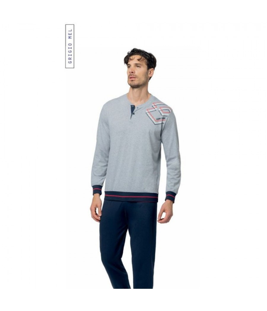 Pigiama uomo Lotto LP1226 in 100% cotone, modello serafino: fresco, comodo e ideale per l’uso quotidiano. Disponibile dalla M alla XXL.