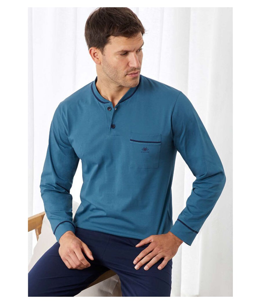 Pigiama uomo GRANCHIO GP1150/C modello serafino calibrato con manica lunga in 100% cotone. Morbido, traspirante e pensato per una vestibilità comoda. Disponibile nelle taglie 56–60.