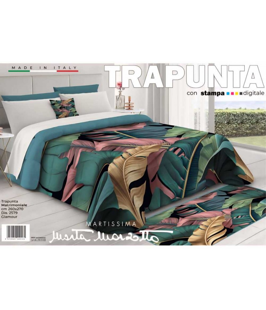 Trapunta matrimoniale Belvedere 2579, realizzata in stampa digitale fotografica double face, con imbottitura invernale da 300 gr/m². Misura maxi 260x270 cm. 100% Made in Italy.